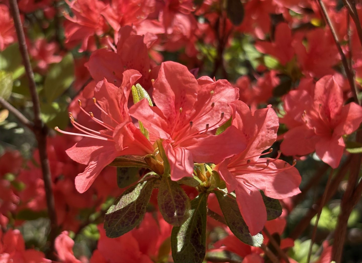 江戸キリシマ系の朱や紅、赤紫のつつじが
